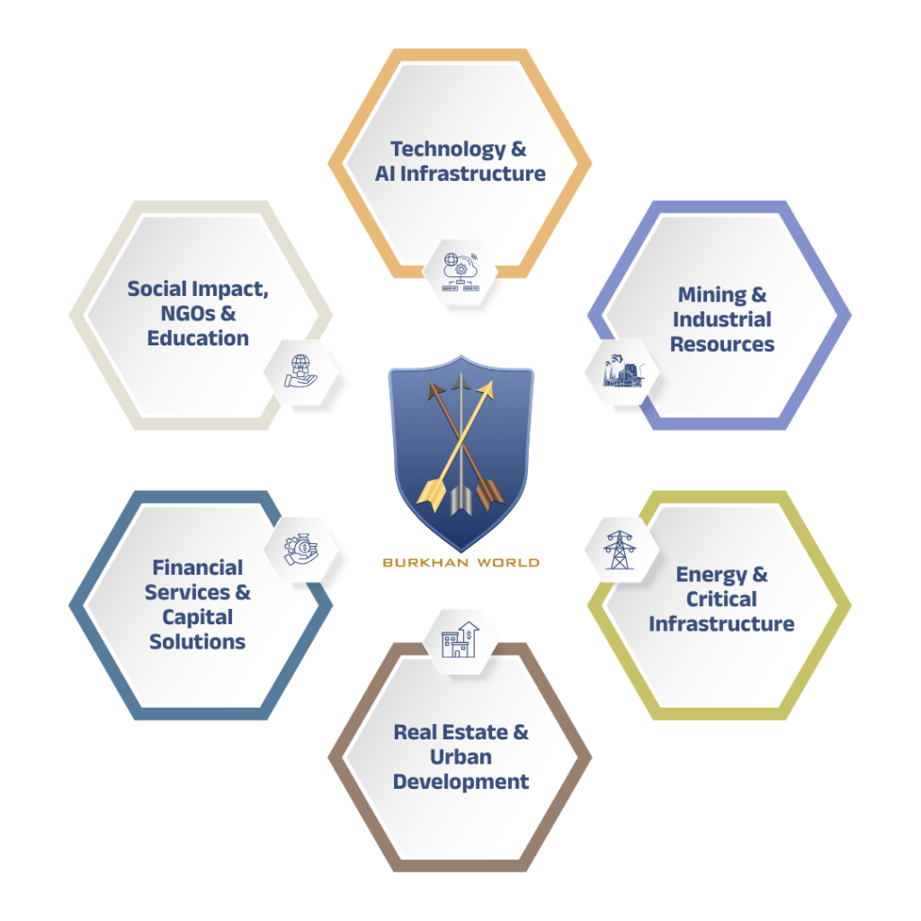 Burkhan World Investments is a global multi-sector investment group committed to developing assets that drive long-term economic and societal transformation. We operate across six strategic pillars: Technology & AI Infrastructure, Mining & Industrial Resources, Energy & Critical Infrastructure, Real Estate & Urban Development, Financial Services & Capital Solutions, and Social Impact, NGOs & Education.